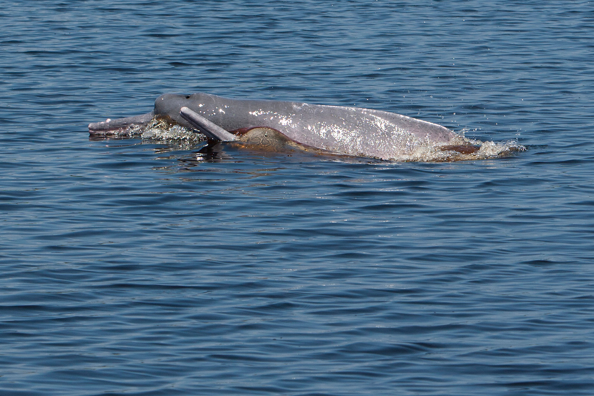 South America, Suedamerika, Peru, Loreta, Amazonas Becken, Flussreisen, Reserva Nacional Pascaya-Samiria, The Ayapua, Forschungsschiff, Boot, 1906 in Hamburg gebaut, restauriert 2005, Samiria River bei Bolivar, Expeditions Schiff, aus der Gummie Boom Zeit, Rubber Boom, September 2009, rosa Flußdelfine, Flussdelfine, Delphine, Amazonasdelfin( Inia geoffrensis) Pink river dolphin,
