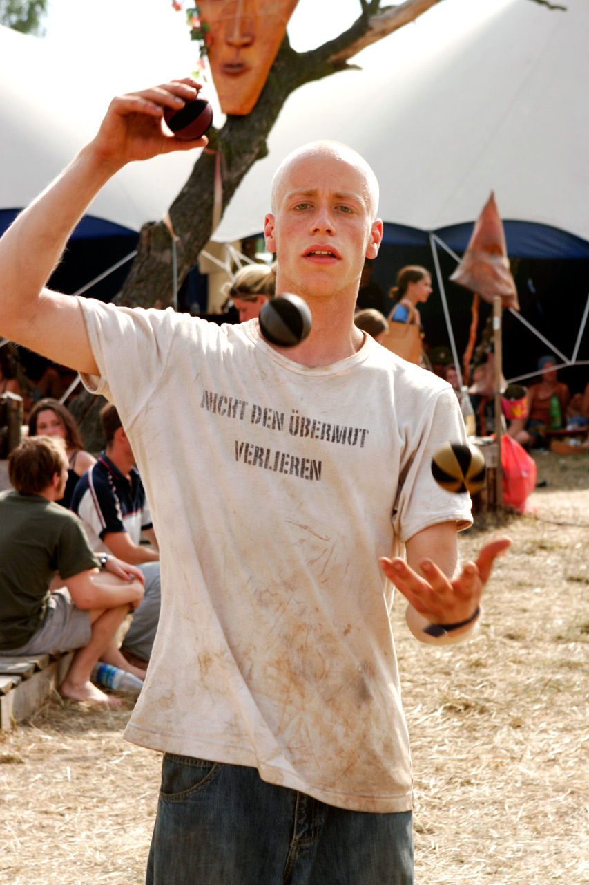 Deutschland Hamburg Mcklenburg Vorpommern Fusion Festival 30.06.-03.07. 2005 Kulturkosmos Flughafen Laerz / Mueritz, ehemaliger russischer Militaer Flughafen Hanger Jugend Kultur Szene Feiern Sommer Rave Party Dubstation Chill Out Area Chillen entspannen Elektro Jonglieren