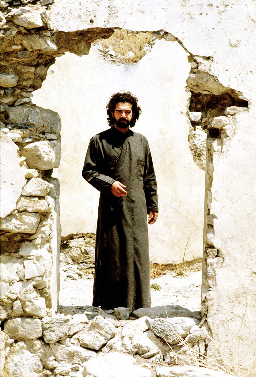Griechenland, Kreta, Mönch in alten Gemäuern