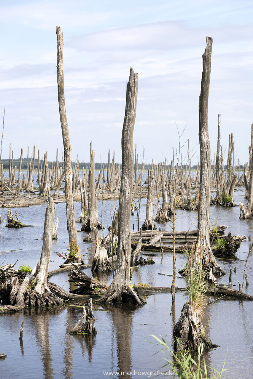 Europa, Deutschland, Mecklenburg- Vorpommern, Peenestrom bei Pinnow, abgestorbene Baeume, Erlen, Ueberflutungsgebiet, Ausgleichsflaechen, engl.: Europe, Germany, Mecklenburg-Western Pomerania, Peenestream, dead Trees, <birds, Previous Image Next Image